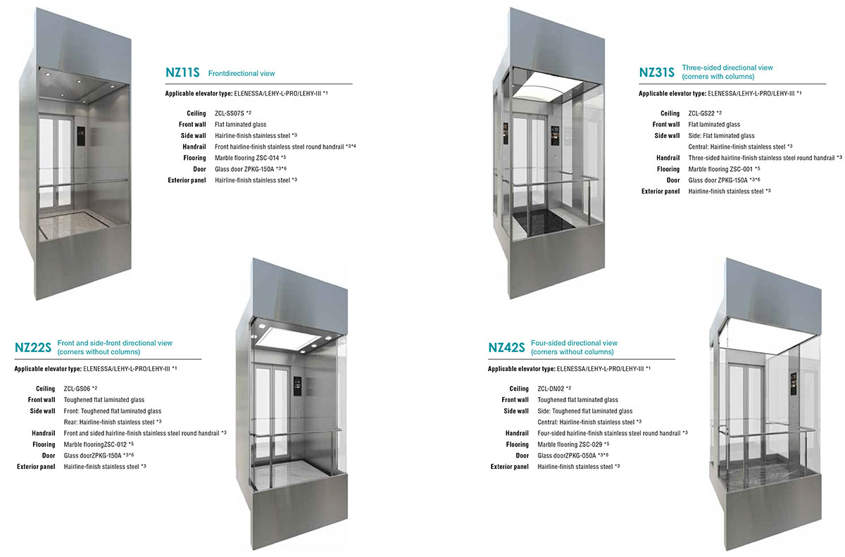Ngoài ra, khách hàng có thể kết hợp các thành phần để tạo ra thang máy lý tưởng cho một tòa nhà hoặc mục đích cụ thể, cho dù đó là khách sạn, trung tâm thương mại hoặc văn phòng, trong nhà hay ngoài trời. Một loạt các loại thang máy tiêu chuẩn phổ biến cũng có sẵn, cung cấp hiệu suất chi phí và chất lượng đã được chứng minh.