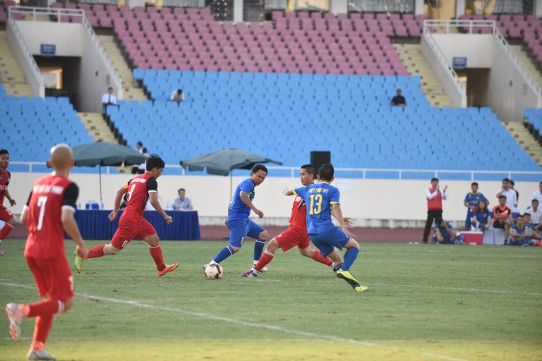 Những phút đầu tiên, khu vực giữa sân diễn ra vô cùng quyết liệt, hai bên đều bố trí đội hình có xu hướng tấn công. Đây chính là điểm khác biệt so với hai trận trước của đội Việt Phát IVT. Hai trận trước họ đều vào trận với chiến thuận đá chậm và thiên về phòng ngự.