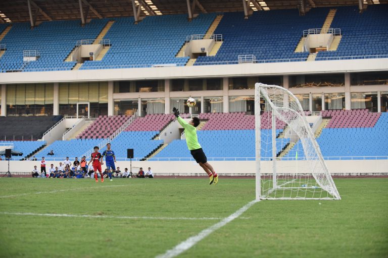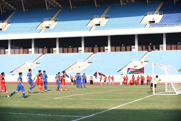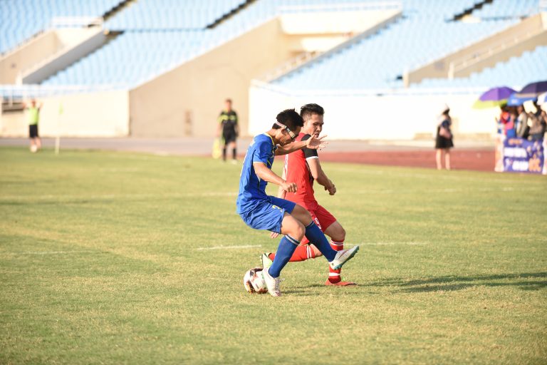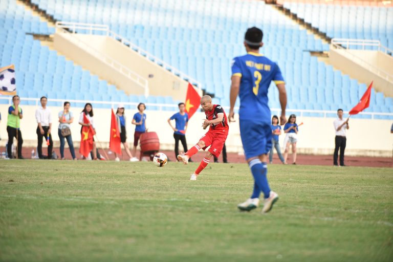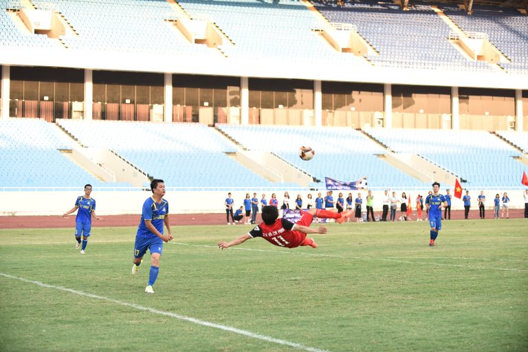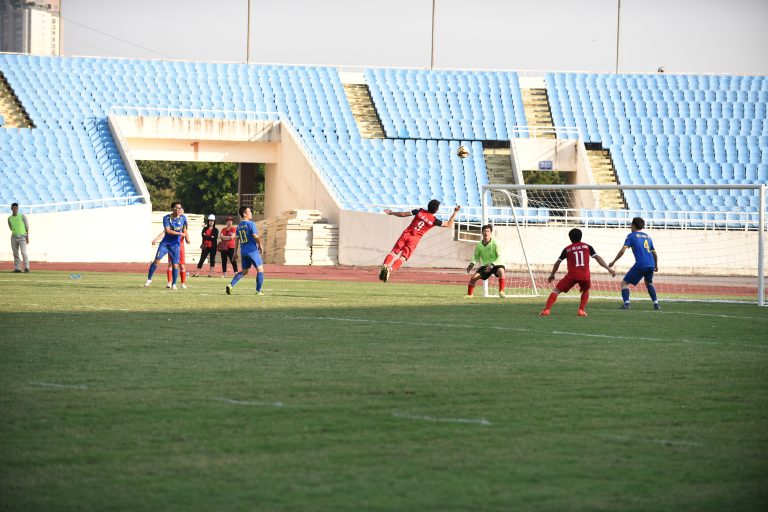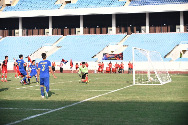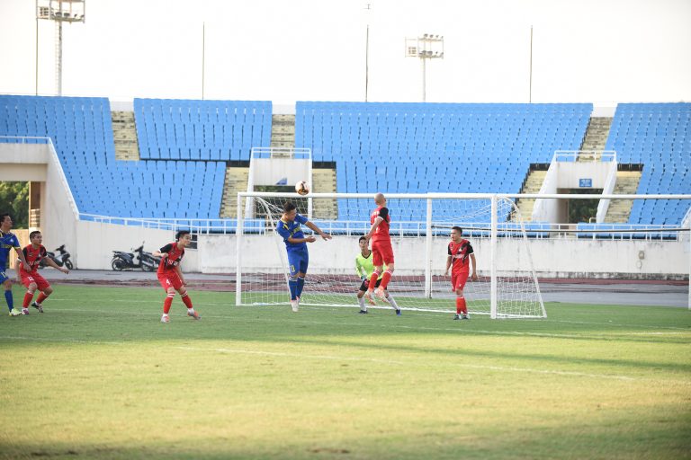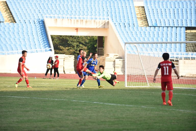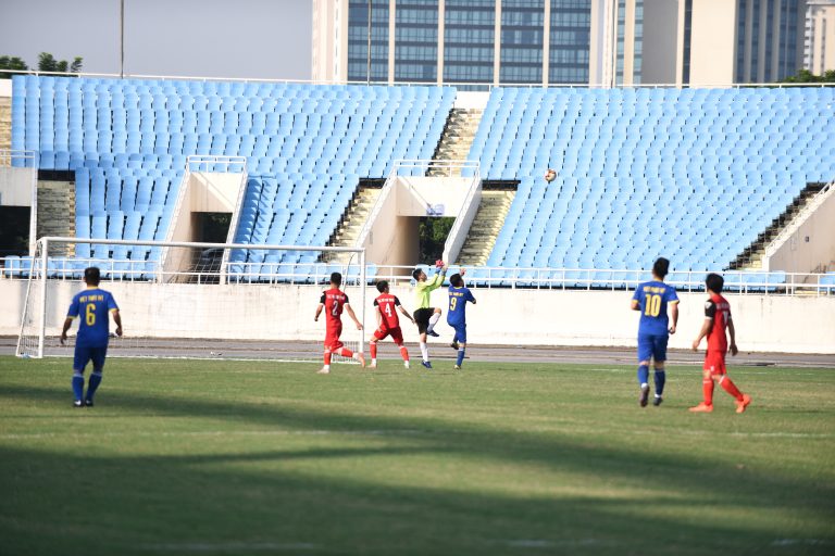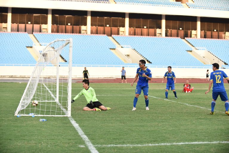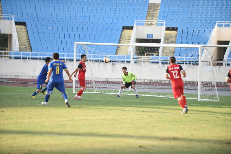 Lại xà ngang! Thanh Phong sút ngay khu cấm địa, bóng bật vào hậu vệ của Việt Phát – IVT đập xà ngang.