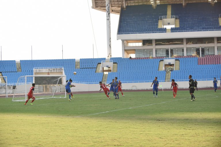 Phút thứ 19, Minh Nhựt bật cao đánh đầu rất căng, bóng vọt xà ngang trong gang tấc.