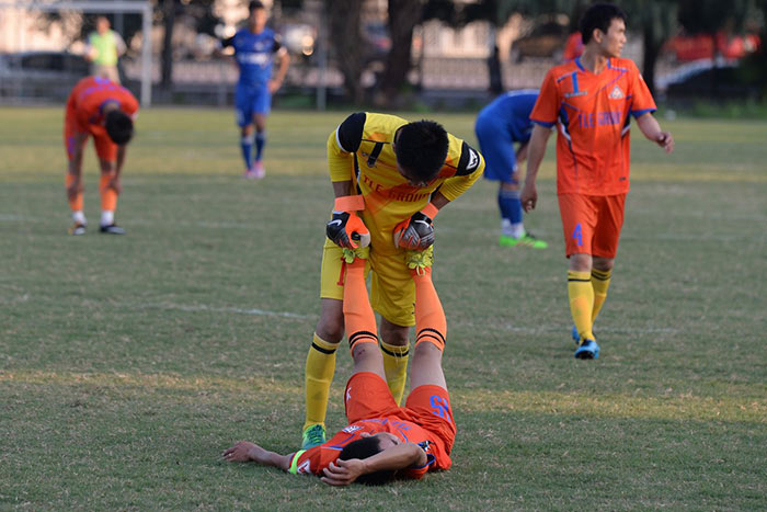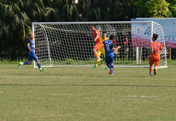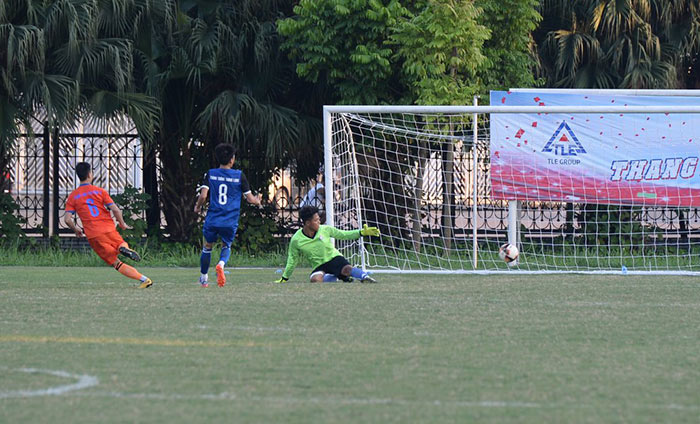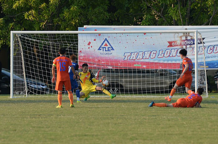 16′: Tình huống nguy hiểm đầu tiên được đội Thành Thắng Thăng Long tạo ra vào phút thứ 16. Nhận đường chuyền như đặt của đồng đội, Hoàng Phong đối mặt với thủ môn Văn Lý nhưng cú sút lại thiếu lực và không chuyển hóa thành bàn thắng.