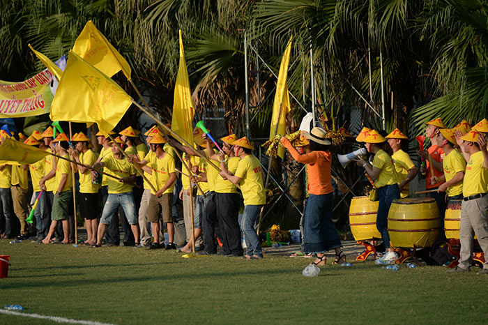 Cổ động viên của đội áo vàng bung hết sức cổ vũ đội nhà trong những phút cuối trận đầy gay cấn